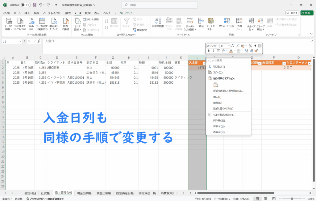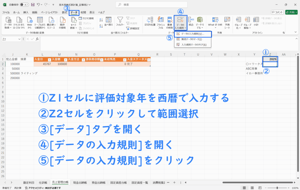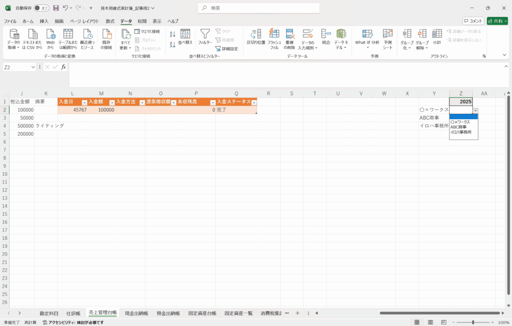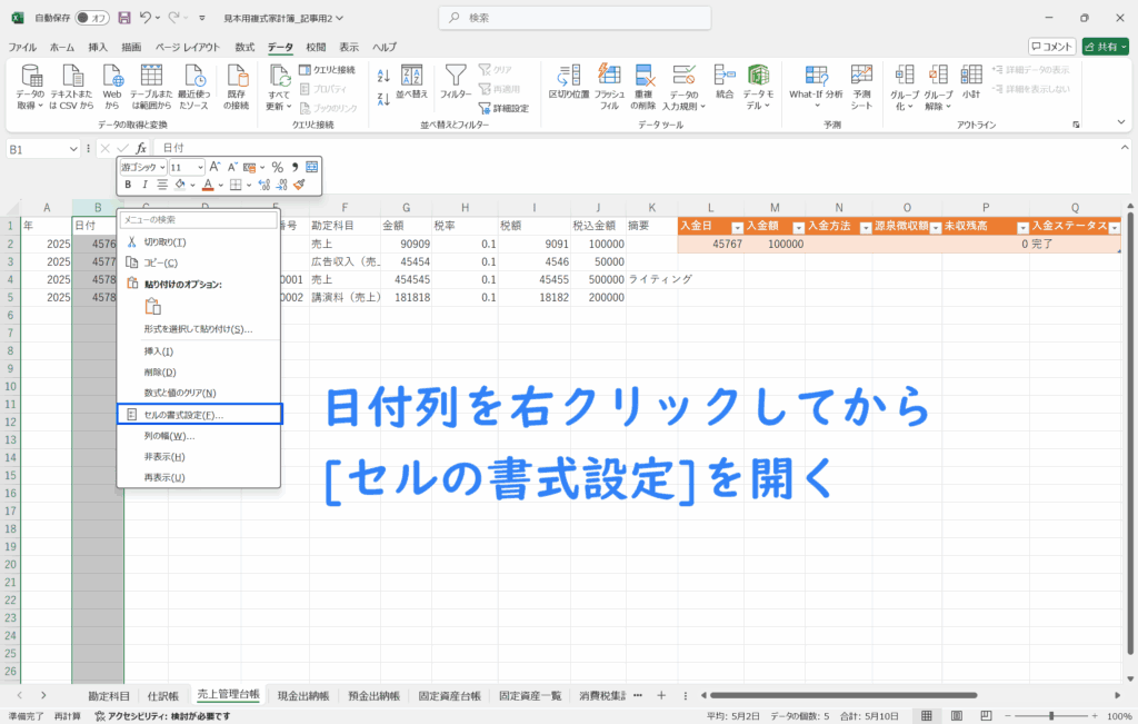 「Excelの複式事業簿」で売上管理台帳シートを作成する