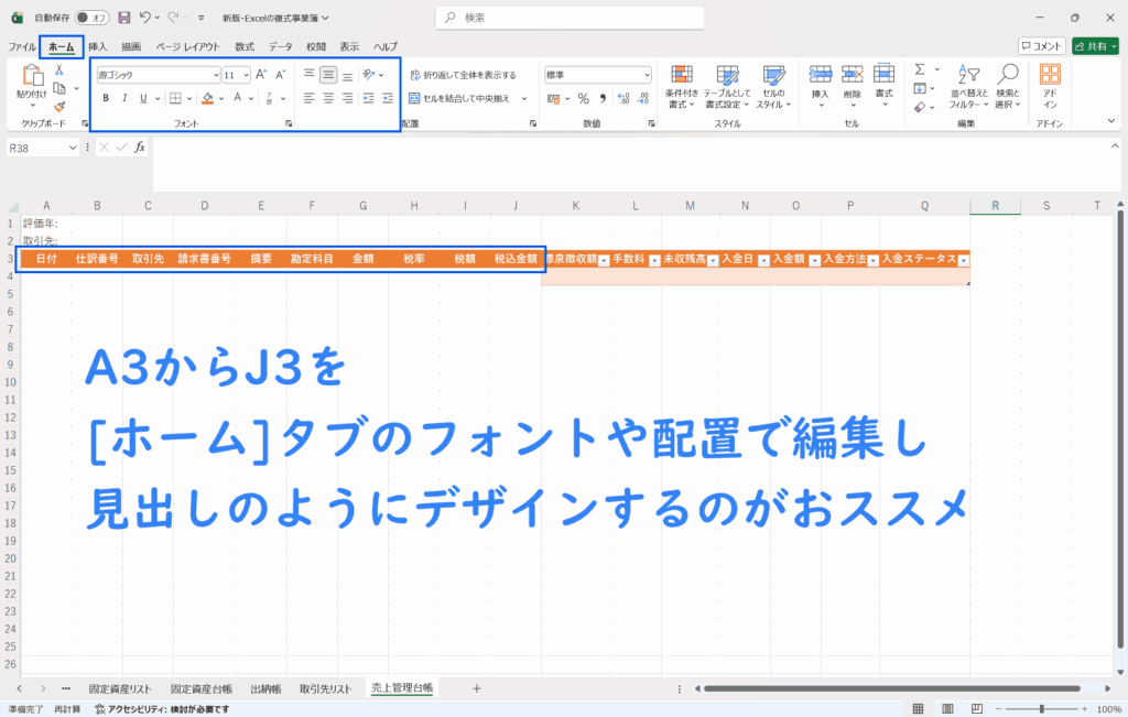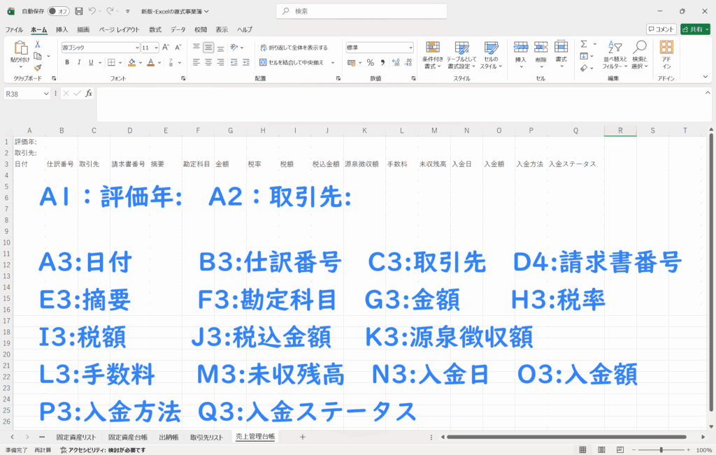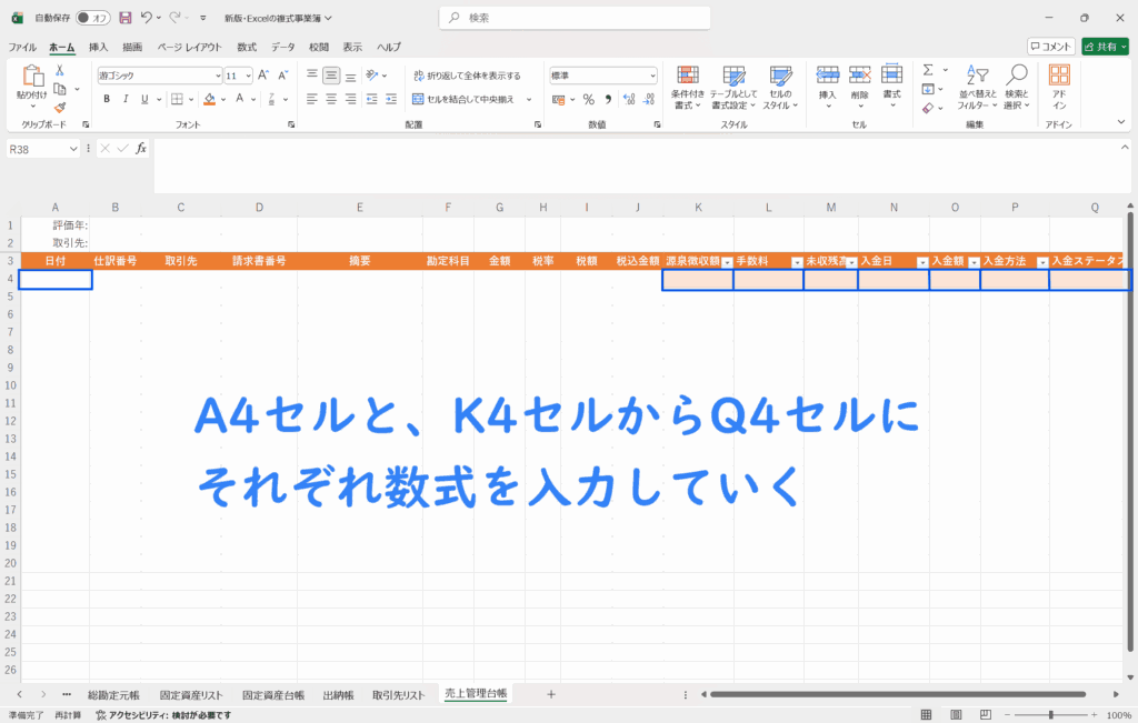 今回は補助簿編のひとつ、売上管理台帳を作成していく。