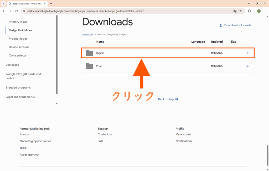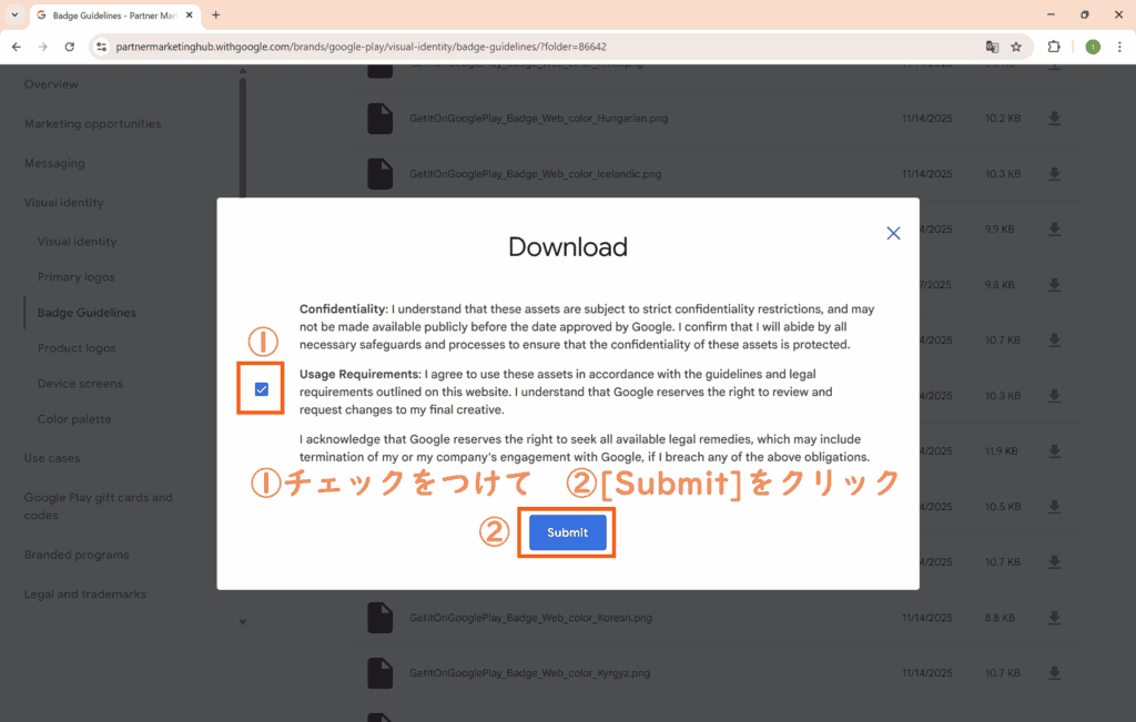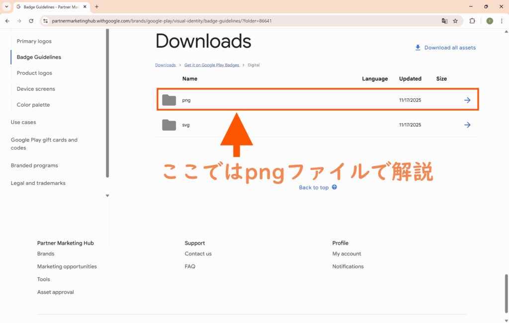 Google公式サイトにアクセスしてバッジ画像をダウンロード