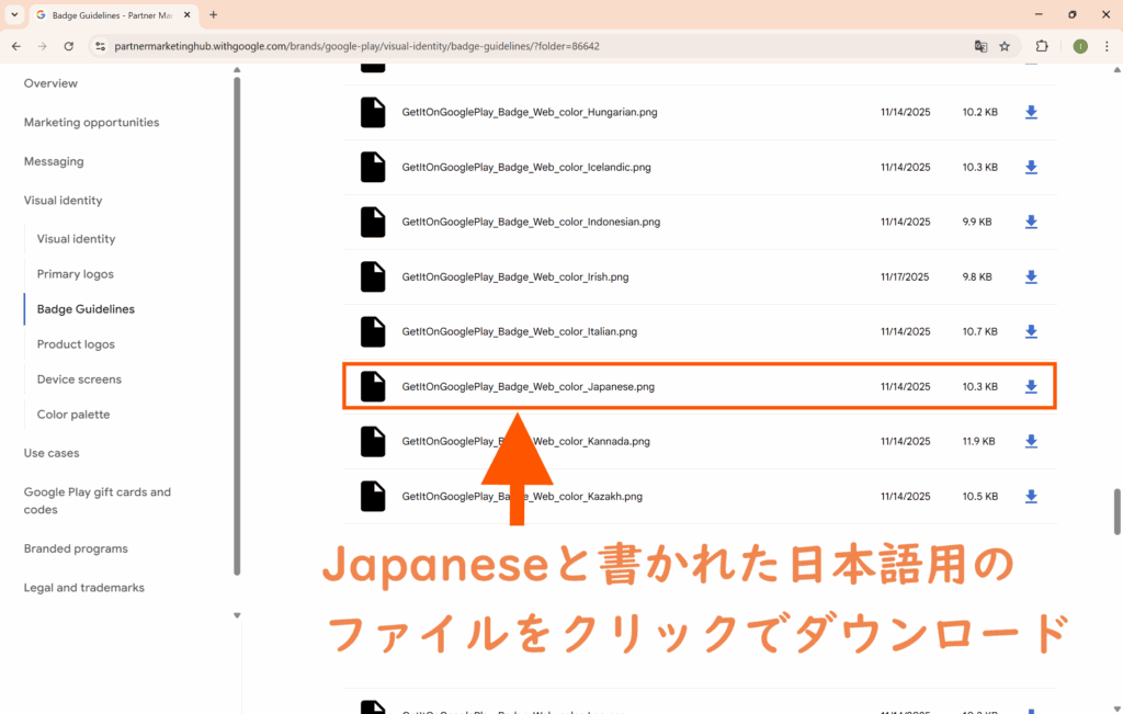 Google Play バッジの設置方法①:Google公式サイトにアクセスしてバッジ画像をダウンロード
