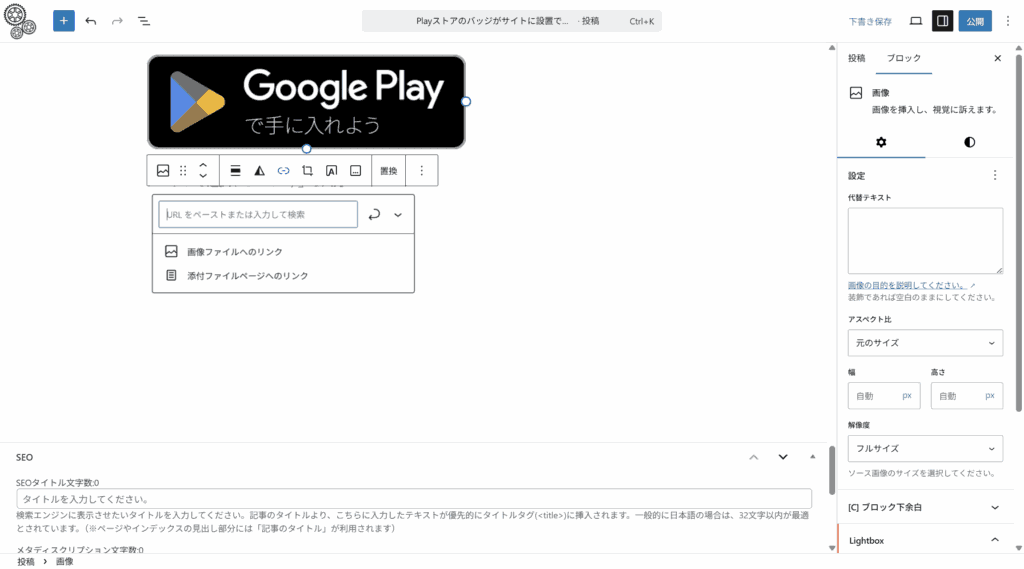 Google Play バッジの設置方法②:ダウンロードしたバッジを設置&リンクを貼り付ける