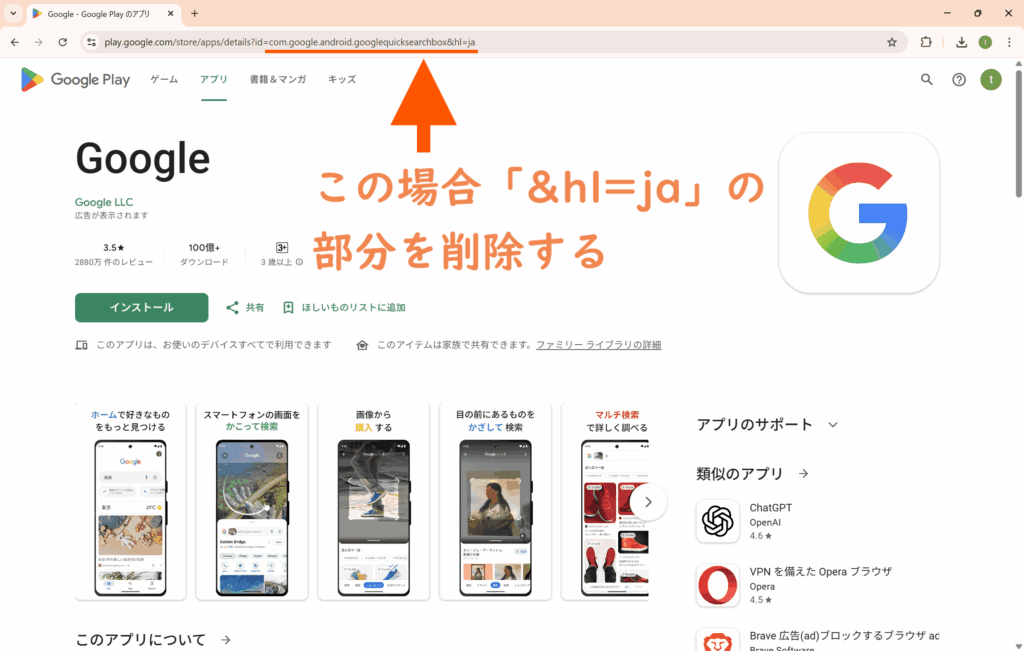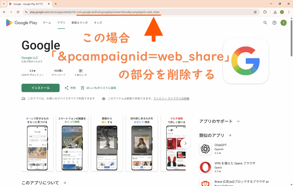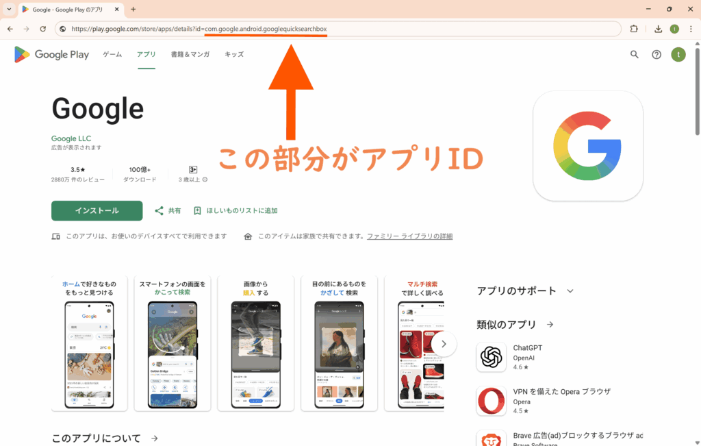 • 貼り付けるリンクはGoogle Play ストアのアプリダウンロードページへの直リンクで、必ず以下の形式に沿ったリンクを貼り付ける