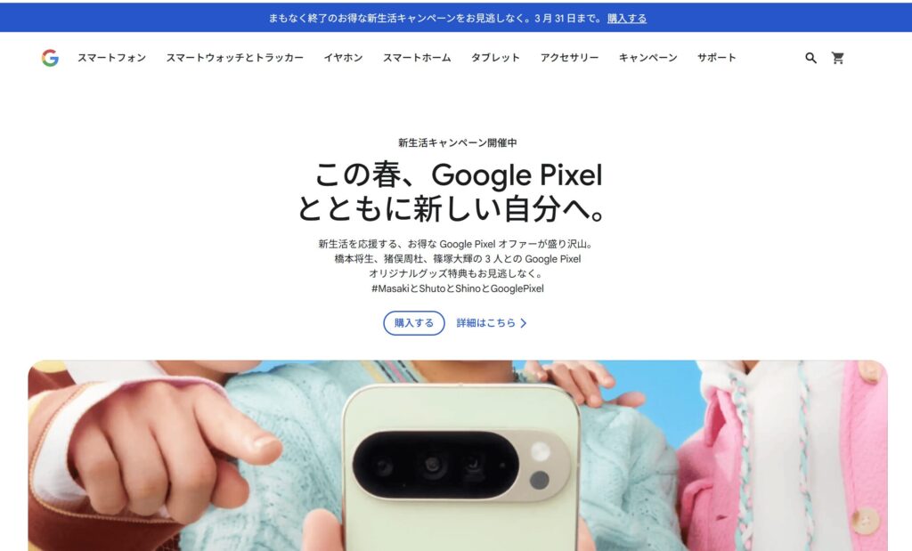 2026年3月現在、新生活キャンペーンを3月31日まで開催中のGoogleストア。