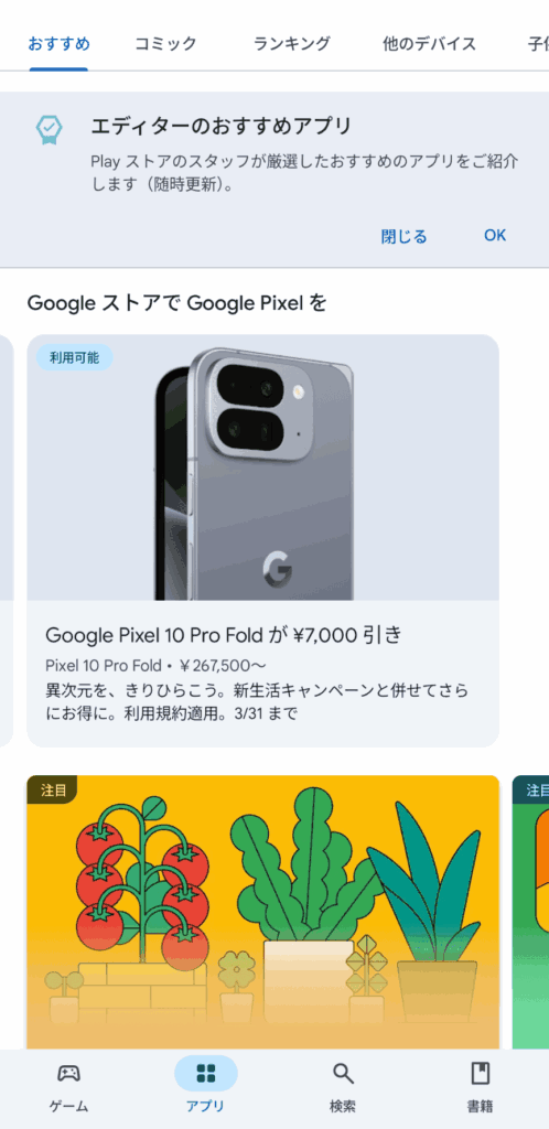 結論を先に紹介。GoogleのPixel Watch4・Pixel 10 ProおよびPixel 10 Pro Foldでプロモーションコードを適用するにはPlayストアに表示される画面を経由すればOK。すべての人が表示されるわけではないため注意。以下で画像つきで確認手順を解説
