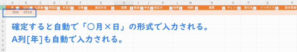 自動で「4月1日」に変換されて、A列の[年]も入力される。