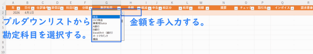 - [勘定科目]の選択