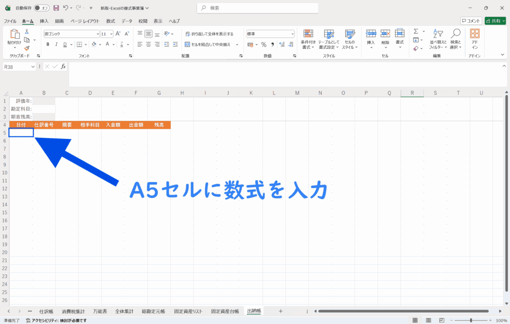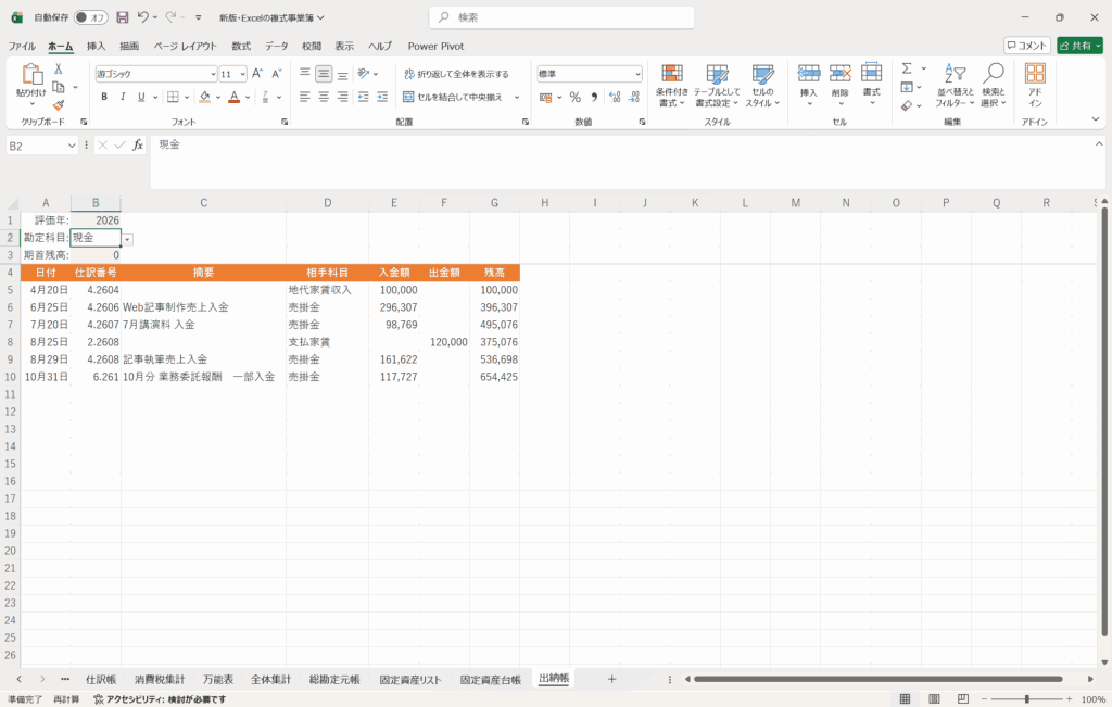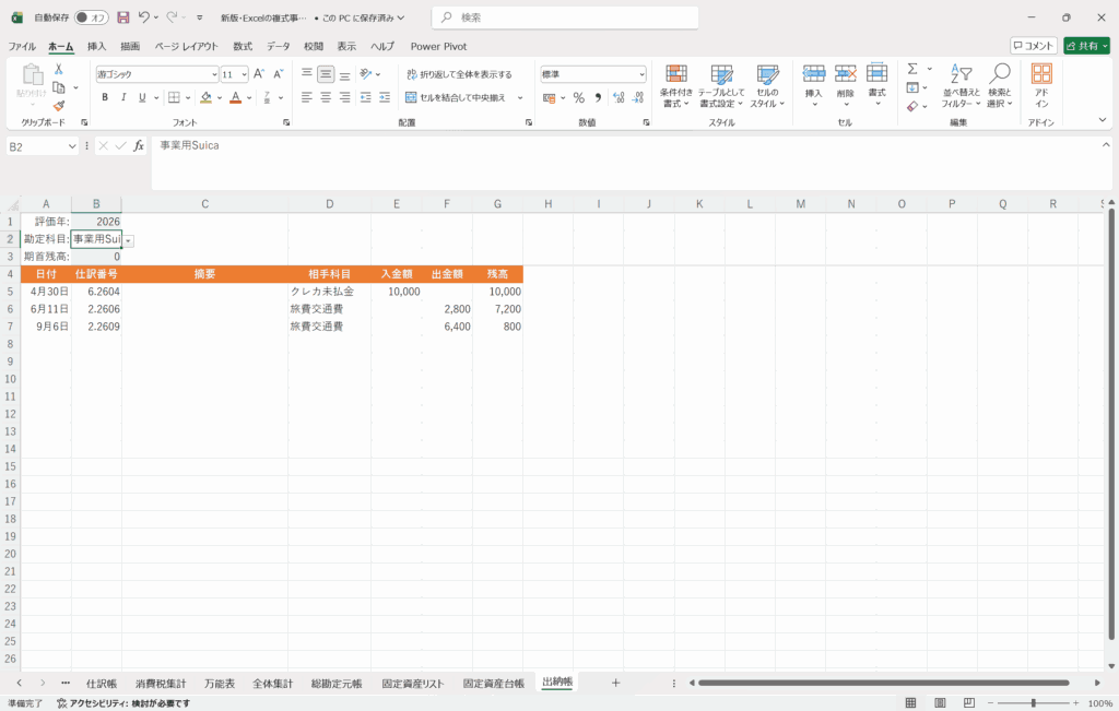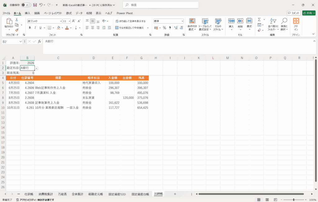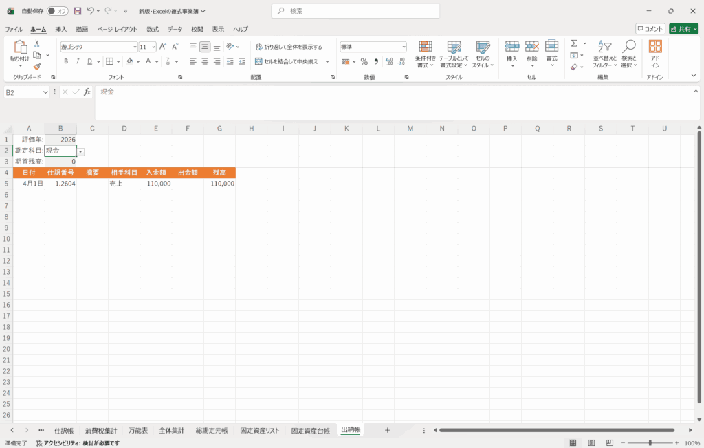 今回は補助簿編のひとつ、出納帳を作成していく。
